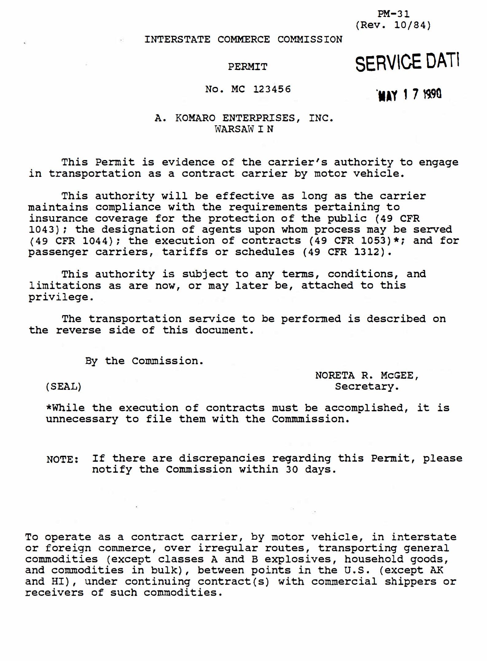 MOTOR CARRIER CERTIFICATE APPLICATION
